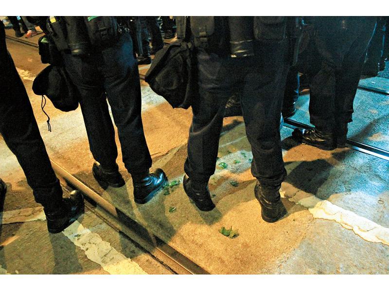 釋法前夕千人圍西環 示威者襲警擲磚扔玻璃樽2警傷(成報)