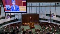 香港特區行政長官梁振英在立法會宣讀佔領運動後首份施政報告